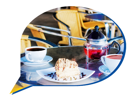 Französisch lernen und dabei die französische Lebensart genießen. In diesem Konversationskurs ist beides möglich. Bei Tee oder Kaffee und einer französischen Kuchenspezialität werden in entspannter Atmosphäre »fast nebenbei« Ihre Konversationsfähigkeiten verbessert und flüssiges Sprechen geübt. |